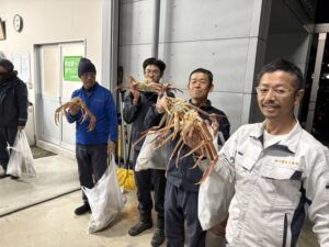 弊社では毎年、産地直送の越前ガニを従業員に配布しています! 従業員もご家族も大満足のイベントです。 1番大きなカニは”極み”にも負けず劣らずの大きなカニです! じゃんけん大会で大きなカニを競いました!!
